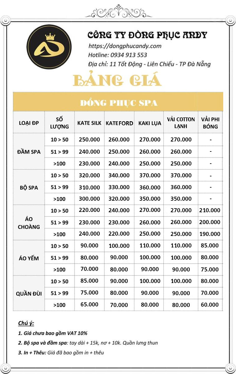 Nếu bạn đang có nhu cầu tìm đơn vị chuyên may đồng phục spa tại Đà Nẵng thì Andy là sự lựa chọn hoàn hảo mà bạn nên tham khảo. Với kinh nghiệm hơn 6 năm trong lĩnh vực may đồng phục spa, Andy sẽ tư vấn cho khách hàng những lựa chọn phù hợp và tốt nhất đúng theo nhu cầu và đảm bảo sẽ có mức giá rẻ nhất so với các đơn vị may đồng phục spa đà nẵng hiện nay